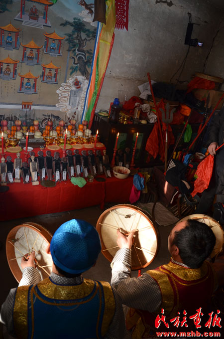 隆冬,萨满传承仪式在小院举行 张学慧摄 引自民族画报