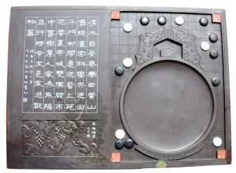 尽管陶瓷砚占有一席之地,但石砚无疑是砚之主流。广东之端砚,安徽之歙砚,甘肃之洮砚,均跻身“四大名砚”。端砚取材于广东肇庆高要县东南端溪之烂柯山(又称斧柯山)因其“体重而轻,质刚而柔,摸之寂寞无纤响,按之如小儿肌肤,温软嫩而不滑”且不损毫,宜发墨,所以自唐代问世以来,便颇受文人学士青睐。加上纹理绮丽,各具名目,加工技艺日益精湛,地位越来越高,最终雄居我国石砚之首,且长盛不衰。然端砚佳品,并非完全出自端州。明末清初,苏州制砚水平陡升,技艺日益精进。著名琢砚艺人顾道人,堪称高手。其子圣之,弃学从艺,制砚皆仿古式,风格朴拙,名重一时。因其子启明早逝,其媳邹氏承其技,人称顾二娘,制砚水平超越顾家前人,成为驰名宇内之琢砚名师。康熙末,闵人黄莘田宦游广东,卸职后定居吴们,将带来的端州上好石材交顾二娘琢制后收藏,并自取斋室名为“十砚斋”。现故宫博物院藏有一方“洞天一品砚”,乃其传世佳品之作。顾二娘无子,以娘家侄儿为嗣,名顾公望,字仲吕,也以琢砚为业,曾应诏进京为宫廷制砚。