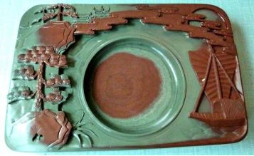 陶砚始于汉代,后世也多有烧制。现今仍存于世的西汉“十二峰陶砚”,奇峰竞拔,形象古朴而生动,当属传世美砚台之精品。唐代,有三彩砚,于唐代墓葬中多有出土。宋代,陶砚数量大增,且造型更加完美。武昌县有名匠万道人,所制陶砚极精致,砚底刻有篆文“万”字。湖南省博物馆现藏有万道人刻制长方陶砚一方,足可与端砚、歙砚相媲美,甚至在当时的价钱超过前两者的价钱。曾有一文人买过其制作的一方陶砚,磨研30余年仍然发墨如初,被此人视如珍宝。