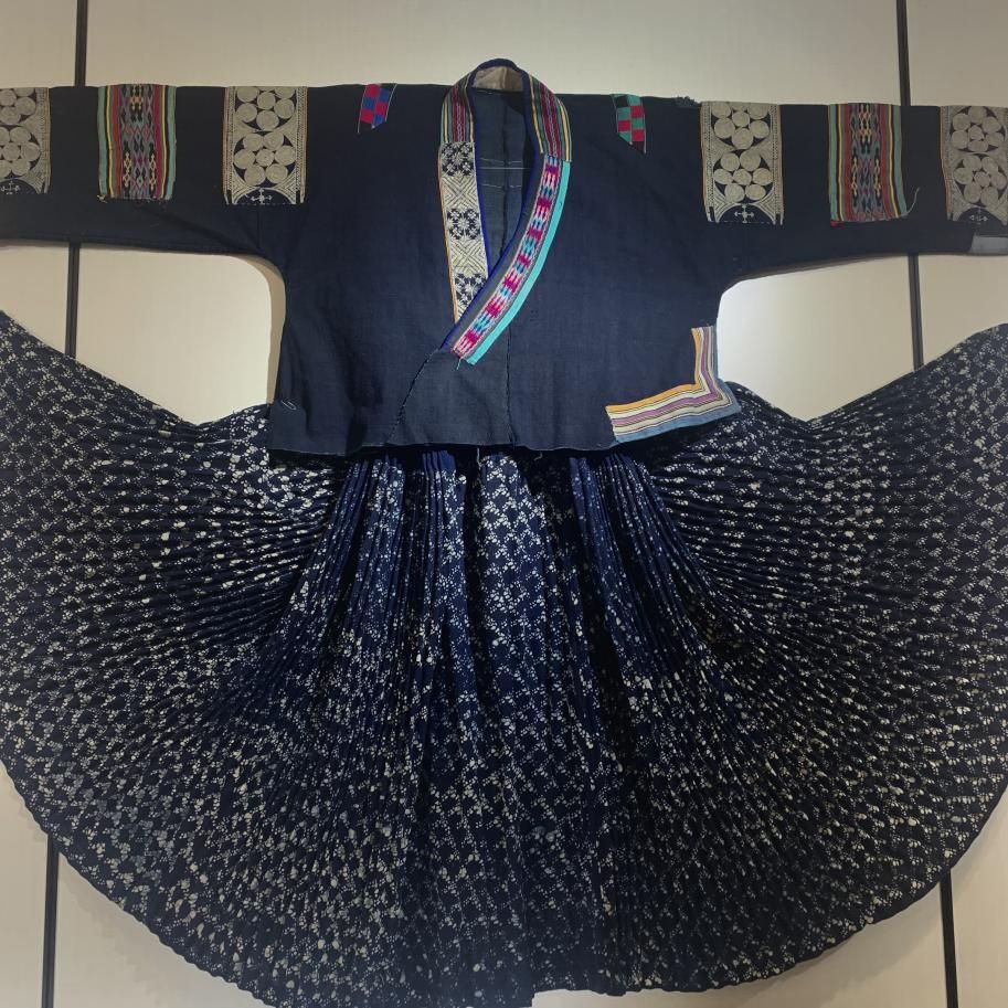 几何花卉纹蜡染冬装对襟上衣,原点几何纹蜡染百褶裙