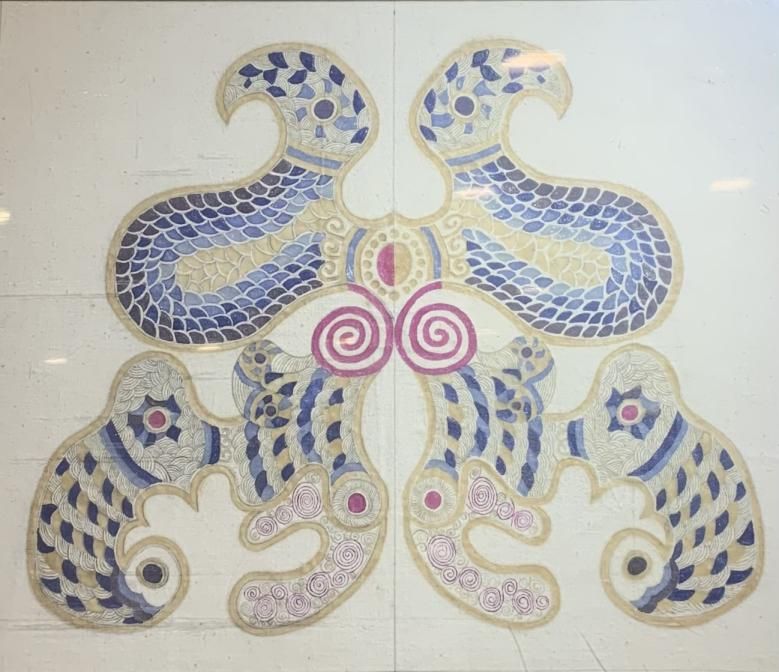 蜡染的起源最早可追溯到两千多年前的秦汉时期,甚至更早。蜡染古称“蜡缬(xié)”,缬的意思是染彩,它与“绞缬”(扎染)、“夹缬”(印花蓝布)一起被称为中国古代的三大印花技艺。从传世的和出土的蜡染实物看,北京故宫博物院所藏的唐代三色蜡染、日本正仓院所藏的“对树象羊蜡缬屏风”,贵州出土的宋代苗族点蜡幔及鹭鸟纹彩色蜡染衣裙等,都是蜡染流传悠久的历史见证。