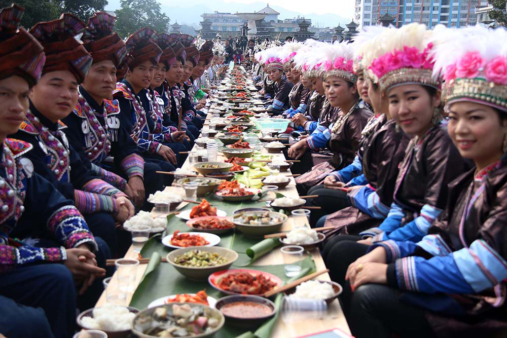 “长桌宴”是侗族最为隆重的待客礼俗。无数游人路过此地,都被侗族这一浓郁的习俗感染,参与其中。