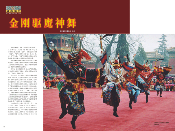 在表演程式方面,从《雍和宫志略》中了解到,清晚期至民国时期,雍和宫金刚驱魔神舞举行的日期、地点、幕次的情况与现在略有不同。
