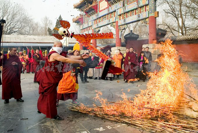 雍和宫住持将象征邪祟的“巴苓”投入烈火中