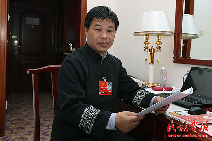 2018年3月14日,全国人大代表,贵州省黔东南苗族侗族自治州天柱县林业局办公室主任、林业科技推广站站长袁昌选接受《民族画报》记者采访