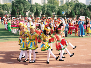 银川市金凤区第十一小学举办少数民族传统体育运动会。
