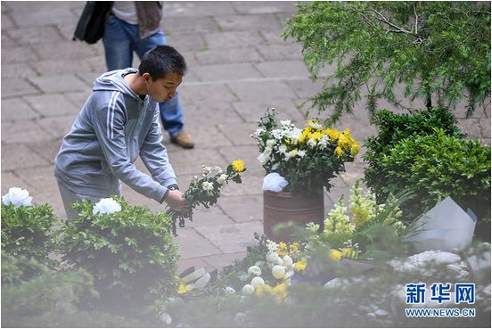 市民在聂耳墓前哀悼,献花(新华网 张楠/摄)