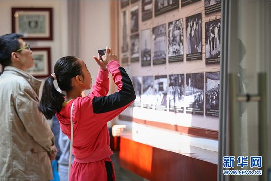 在聂耳纪念馆,一个小女孩用相机记录下聂耳的生前故事(新华网 张楠/摄)