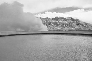 羊八井的一处温泉和远处的雪山 普布扎西摄