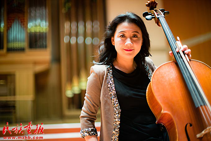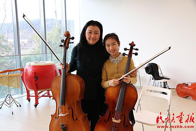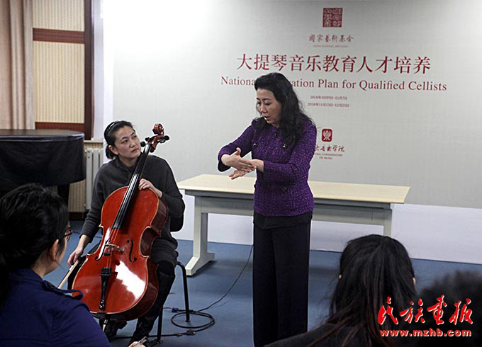 娜木拉(右)给全国艺术院校青年教师上大提琴课。