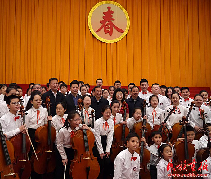 娜木拉带领中央音乐学院附中师生参加2019年中共中央国务院春节团拜会文艺演出。