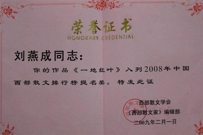 刘燕成,2004年7月毕业于贵州大学农林经济管理专业,现为省公共资源交易中心科长。业余从事散文创作。创作了多篇散文并整理出版,著有获第二届贵州少数民族文学创作“金贵·新人奖”的乡土系列散文《遍地草香》、获“东丽杯”全国孙犁散文奖散文集类优秀奖山水散文集《月照江夏韵》、被列为2017年度中国作家协会少数民族文学重点作品扶持项目的散文集《黔山秀水:一个苗族作家的贵州山水之旅》以及贵阳山水散文《贵山富水》等四本个人散文集。