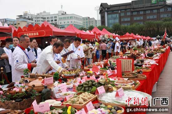 5月31日,“红色热土 壮美广西”2021广西全域旅游大集市活动在桂林落下帷幕。作为大集市系列的一项重点活动,2021广西红色旅游特色美食大赛由广西烹饪餐饮行业协会、桂林餐饮烹饪协会承办,引来八方餐饮业者携201项参赛食品参赛。