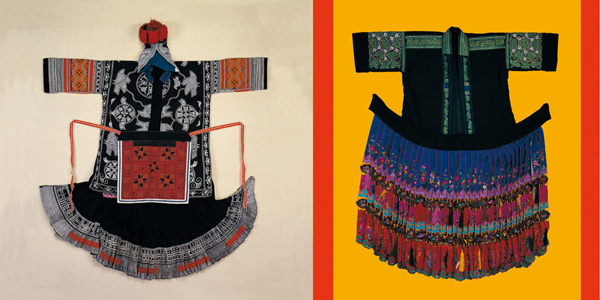 苗族蜡染传统女服和苗族传统绣花盛装女服,中央民族大学民族博物馆馆藏