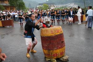 铜 鼓 铜鼓是白裤瑶虔诚礼拜的神器,是图腾崇拜和艺术的精华,更是瑶山的精灵和民族精神的寄托。白裤瑶的铜鼓是最具民族特色,早为宋代多为明清铸造,鼓体的形态、鼓面的纹饰十分别致、精美。白裤瑶打铜鼓程序十分讲究,且花样变化多端。白裤瑶铜鼓阵气势宏大,铜鼓与风桶和鸣,声音浑厚洪亮,动人心魄,独具魅力。铜鼓已被赋予丰富的内涵,让人寻觅、回味。