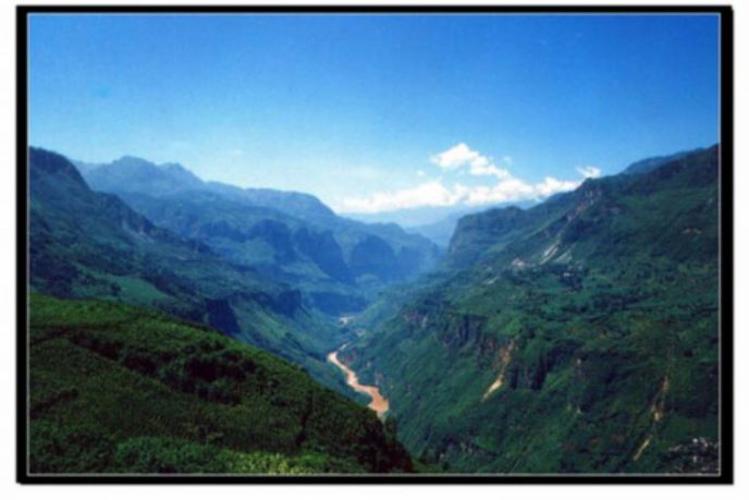 牛栏江是长江上游金沙江段的一大支流,发源于云南省昆明市嵩明县的嘉丽泽。牛栏江是一条跨越云贵两省的江流,在江底乡江底村一个名为“老熊洞”的地方进入鲁甸县境,从这里开始,她便多情地在鲁甸大地上从南到西径直往北环抱了101公里,自然地成为鲁甸同会泽县、巧家县的行政区划分界线。牛栏江峡高谷深,江流曲折,两岸沟壑纵横,峰岭绵延。平缓处,江滩宽阔,水流轻曼;陡峻处,江面狭窄,江水湍急;回旋处峰回路转,跌宕处狂舞高歌。江岸山岭平均高差近2000米,一山有四季,十里不同天,立体气候十分明显。牛栏江峡谷有着十分奇特的地貌特征,沿岸的山岭分3个层次重叠,最下一层是陡峭的斜坡,中间一层是垂直的悬崖,最上一层又是倾斜的大山,于是两岸合在一起就将峡谷拼成了下部V型、中部方型、上部倒八字型的美妙曲线,这一奇观引起了专家学者们的高度重视,并有学者将牛栏江峡谷称作“最神奇的东方峡谷”。