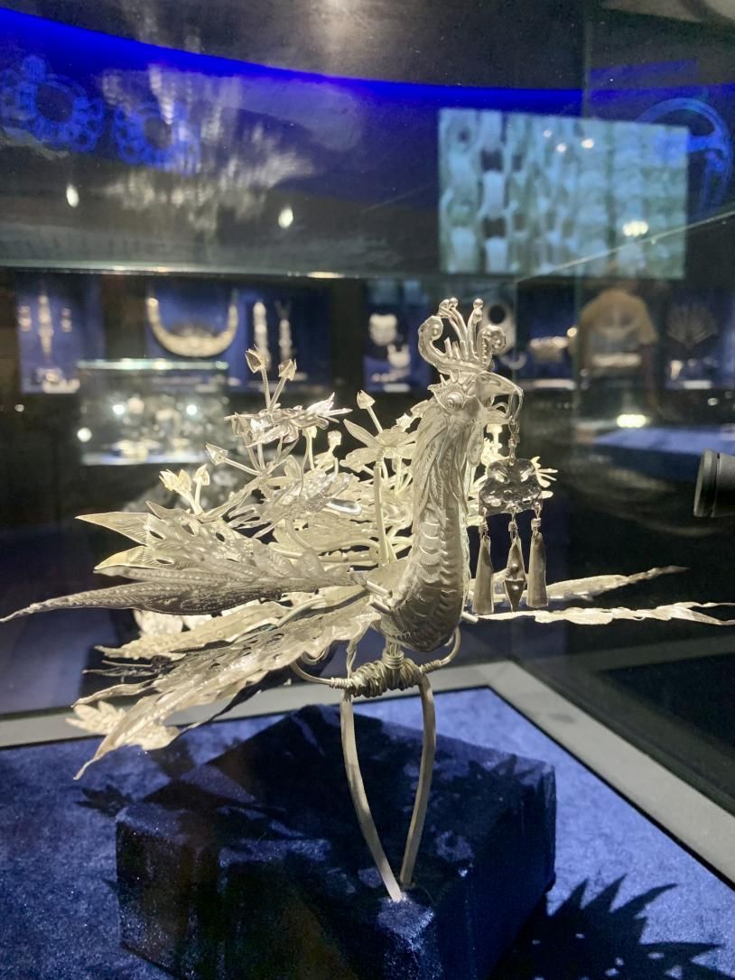 贵州省民族博物馆展出的银饰工艺品(许觊佳摄)