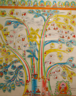 “唐卡”也叫“唐嘎”、“曼汤”,系藏语译音。唐卡的起源,至今没有史料给予精确的记载。据藏史记,两千多年前在西藏修建的第一座宫殿——雍布拉宫的墙壁上就绘有壁画,由此说明唐卡的雏形是源于壁画。有的学者认为,最早的唐卡是绘制在兽皮上,它起源于牧业文明的雅砻文化时期。唐卡可分为两大类,一类是用丝绢制成的唐卡叫“国唐”,另一类是用颜料绘制的唐卡叫“止唐”。常说的80幅医学唐卡即“止唐”中的一种,全称为彩色绘画唐卡。彩绘唐卡是依据《四部医典》这部巨著,在公元1730年五世达赖授意第司·桑结嘉措组织藏区著名医学家、绘画大师通过对尸体解剖、药材实物考察,以科学态度整理绘制的,又被称为《四部医典系列挂图》,挂图的绘制使《四部医典》这部博大精深的医著史书简明易懂。西藏自治区藏药厂的陈列室藏这珍贵的历史资料——医学唐卡,几百年过去了,唐卡色彩依然明亮艳丽、工笔细腻、活灵活现,栩栩如生。绘制唐卡的原料全部是用金、银、珍珠、玛瑙、珊瑚、松石、孔雀石、朱砂等珍贵的矿物宝石和藏红花、大黄等天然植物做颜料制作而成,使唐卡有着非常高的纯度和稳定性。第司·桑结嘉措完成的唐卡有79幅,加附由第司·桑结嘉措亲笔题诗加盖印章的一幅历代名医图,组成“80幅唐卡”。80幅唐卡,从药王及药王城(藏医学基础理论的建立),人体生理病理、诊断、治疗的树喻学说,病因、症状和分类,藏药的药物理论和分类,防病、诊断和治疗、养生方法, 生动形象地反映了藏医药学发展的进程和伟大实践。藏医彩绘唐卡除了有极高的教学价值外,还有很高的民族学、历史学、佛学及绘画学价值,是研究藏文化的珍贵资料,其卷幅之多、内容之广博、构思之巧妙、画工之精湛堪称世界医学挂图之最,是藏医学对世界医学的珍贵贡献。详细名目如下: