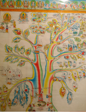 在上述80幅唐卡中:属于藏医学基础理论方面,树喻学说见于唐卡(2)—(4)。唐卡(18)按照人体“龙”、“赤巴”、“培根”的“三大因素”学,提出了它们是维持生命的物质基础,人体平衡失调均可致病。