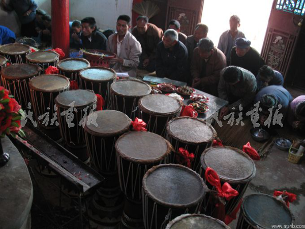 完成制作的象脚鼓要在佛像前祭拜后才能使用