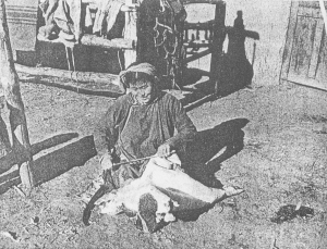 这之后,我们来到鄂伦春族的一个定居点——托河做调查。托河保留着比较完整的鄂伦春族狩猎文化,男人们打猎、捕鱼,女人们则负责做饭、熟兽皮、用皮子做衣服等。女人缝兽皮衣时,用的针还是骨针,线则是野兽的筋。当然,她们还用桦树皮做各种生活用品,如篮子、盒子、筒子等。