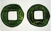 新疆自铸的另一种二体钱币“汉龟二体钱”,是古龟兹国生产、发行和流通的货币。现新疆库车、轮台、库车、沙雅、拜城、阿克苏、新和等地,是古代西域龟兹国领地。龟兹土地肥沃、气候温和,农业比较发达,社会经济繁荣,商品交流活跃,货币经济十分发达,近年来出土的大量本地铸造的钱币,足以说明了这一点。
