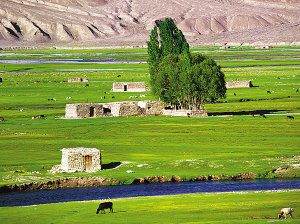 新疆维吾尔自治区塔什库尔干塔吉克自治县金草滩上的草皮房