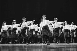 遗憾的是,洋溢着时代气息的“经典化”创作样态在“文革”期间几近停滞,不过这期间也依然出现了以《草原女民兵》《战马嘶鸣》等为代表的优秀作品,这些作品更加深化了这一时期主题先行的创作模式,借用民族舞蹈素材为鲜明的主题思想服务。