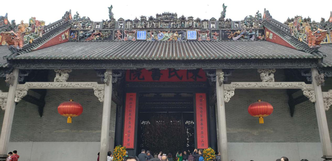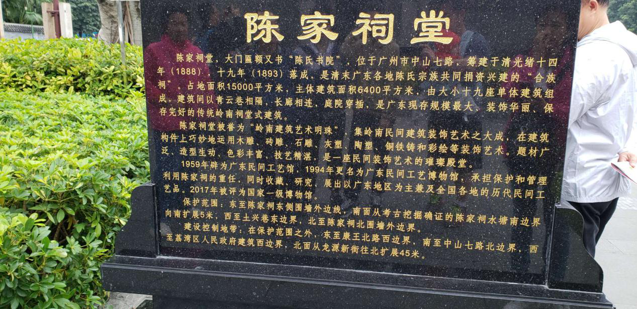 陈家祠堂坐落于广东省广州市中山七路。陈家祠堂又称"陈氏书院",始建于清光绪十四年(1888年),光绪二十年(1894年)落成,它是由清末广东省七十二县的陈姓联合建造的,是广东省著名的宗祠建筑。陈家祠堂的建筑结构可分为三轴、三进,建筑面积达8000平方米。祠堂的每进之间既有庭院相隔,又利用廊、庑巧妙地联接起来,共有九座厅堂和六个院落,祠堂的整体布局上下对称,殿堂楼阁,虚实相间,气势雄伟。"聚贤堂"是陈家祠堂中轴线的主殿堂,也是陈家祠整个建筑组合的中心,堂的正面是一座宽阔的石露台,周围用嵌有铁花的石栏板环绕。祠堂建成之初时的聚贤堂是供族人集会之用,后来改作宗祠,两边的侧房供书院使用,也称陈氏书院。