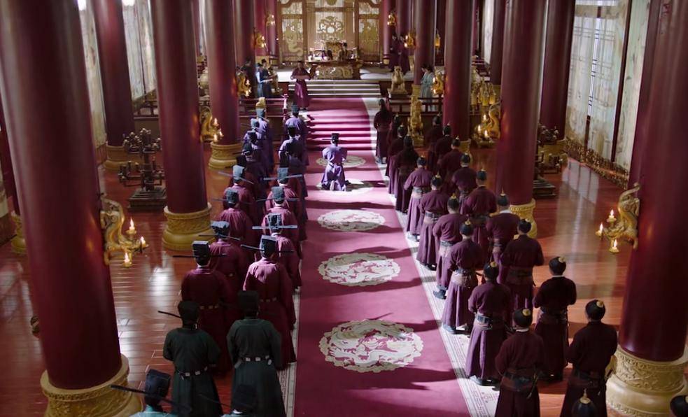 《燕云台》电视剧中朝堂上南北排列的汉、契丹大臣