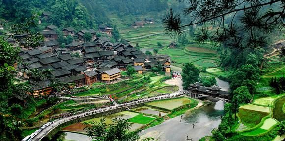 郎德上寨位于贵州省黔东南苗族侗族自治州雷山县的西北部,距县城15公里,距黔东南州府凯里29公里,距省城贵阳221公里。该村海拔735米,为一个自然寨,共176户,826人,主要有陈、吴等姓氏。望丰河流经寨脚朝北流入巴拉河,美丽的风雨桥横卧在寨脚的流水碧波之上。有稻谷、玉米、蔬菜、茶叶和水果等种植业,并培植珍稀树种。郎徳上寨交通便利,水、电、路、电视、电话等基础设施好,几十条寨道和芦笙、铜鼓、木鼓场均以鱼纹石片铺就,别具一格。该村是20世纪80年代初期贵州第一个开放的民族文化旅游村,1984年列为中国“露天民俗博物馆”,2001年被国务院列为“中国重点文物保护单位”,2007年被中国景观村落评审委员会评为“中国景观村落”。2008年奥运圣火凯里站传递在郎德上寨铜鼓坪举行火炬传递起跑仪式。2012年入选第一批“中国传统村落”名录。
