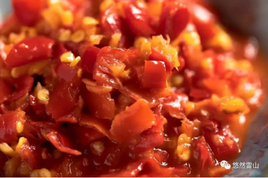 在这十天半月的时间里剁碎的生辣椒才真正因提炼而流露出它隐藏着的美味此时的辣椒完全没有了新鲜时的生辣劲天然的酸味和辣味相互交织层次十分丰富发酵好的糟辣椒酸辣飘香