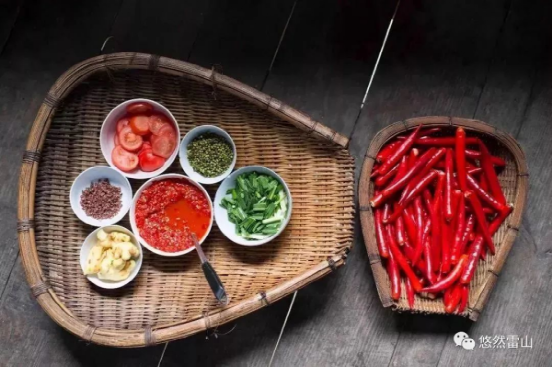 在苗族人家几乎都腌制有糟辣椒它与剁椒不同糟辣椒在剁碎的辣椒里还需要放入盐、糖、姜、蒜和酒一起发酵至少十天半月让生辣椒的味道慢慢泡制出别样的酸味