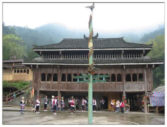 苗族酷爱芦笙,也特别注重芦笙文化设施的建设。自古以来在建村立寨的同时,首先要考虑的就是在寨子的中心地带建立一个具有一定格局的芦笙坪。这是苗寨的显著标志。