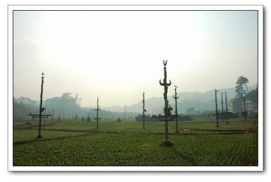 至于安在芦笙柱下方的十字架模型,那纯属是为了供人们在吹芦笙时,倚放和挂靠芦笙而特意设立的。