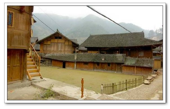 吊脚楼是苗族传统建筑,是中国南方民族特有的古老建筑形式,楼上住人,楼下架空,被现代建筑学家认为是最佳的生态建筑形式。吊脚楼是苗乡的建筑一绝,它依山傍水,鳞次栉比,层叠而上。是苗族最具特色的建筑。每栋木楼分上下两层,按木楼的大小不同,下层从2-6排不等,因房子建在山坡上,地势不同。里层一排为短柱,外面一排为长柱,柱子的上截柱头都凿有“十”字眼,用粗方条连成整体,为了支撑木楼的重量,下层屋多选用粗大的老杉木作柱子。最为奇特的是上下两层柱子在结构上是截然分开的,各自成体系。建房的时候先建底层,再建上层。上层屋柱的柱脚全“坐”在下层柱头向外伸出的横梁尾端上,垂下来约有一尺来长的柱脚就叫做“吊脚”。苗胞久住在高山,一年多数时间雾锁云绕,但木楼较干燥,一般不容易患风湿,但木楼较易燃烧,近年来,较富的苗胞也兴建砖混房,但模式仍有所雷同。木楼中厅,干净整洁,宽敞明亮,它不仅是苗族吃饭、休息、祭祀的场所,也是苗族人民讲故事、唱苗歌、吹苗笛、拉果哈和男女谈情说爱的地方。它成了苗族独特的文化事象――火塘文化。