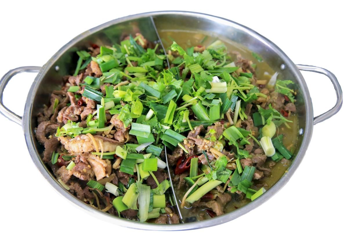 酸汤牛肉的精髓其实在汤,榕江糟辣椒用油炒制后加清水,再放上本地番茄,熬出来的汤可谓是一口入魂!提神开胃,再配上贵州本地小黄牛精选黄牛肉,也是鲜嫩多汁。酸汤锅里一涮,蘸上辣椒送去嘴里,那叫一个爽。