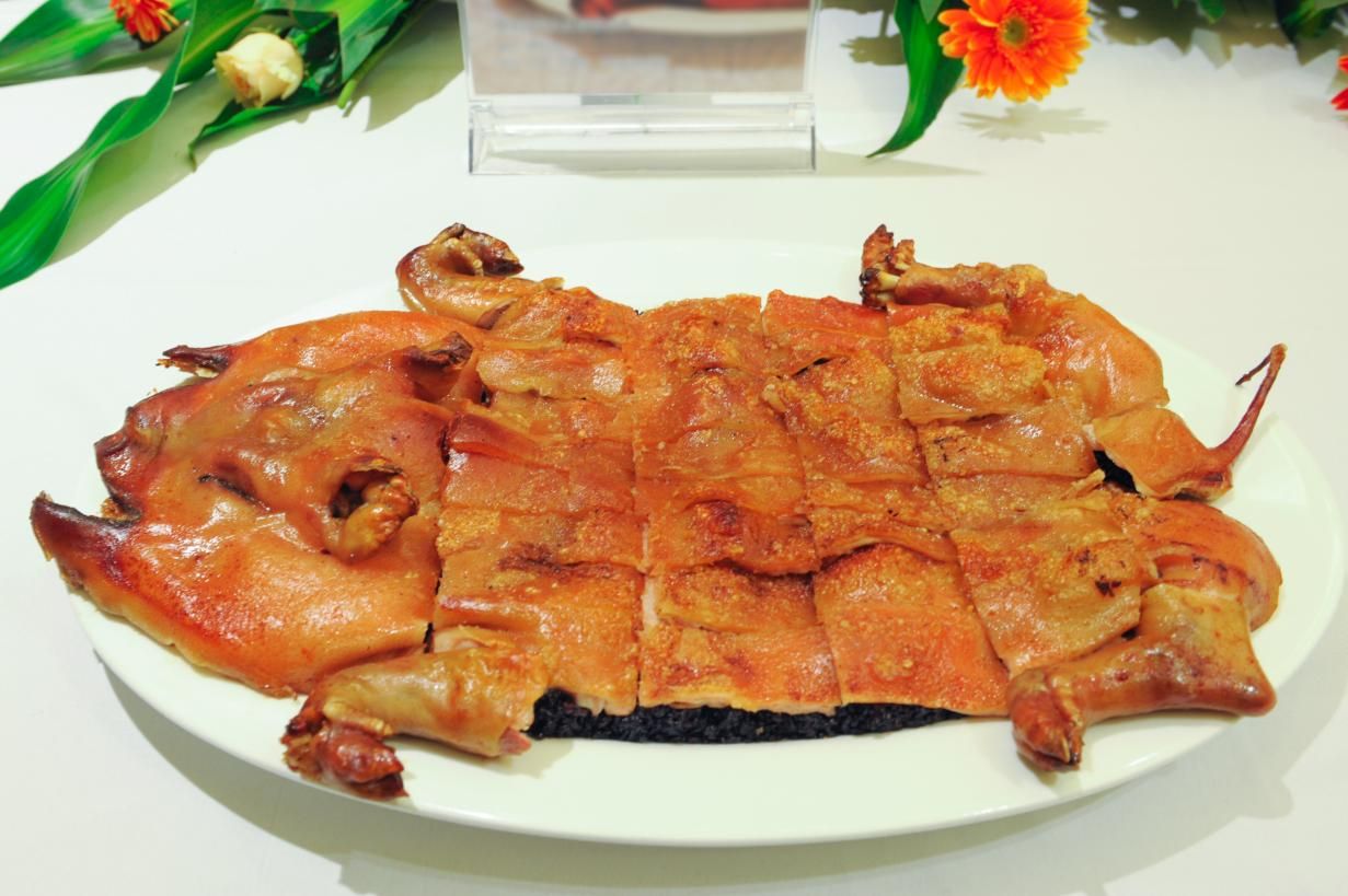 烤香猪精选中国珍贵的微型地方猪种月亮山小香猪为主要食材,小香猪具有瘦肉厚、纤维细、脂肪颗粒小、香味浓郁的特点,口感外焦里嫩,香脆可口,肥而不腻,再配上一碟烧烤辣椒,绝对是食肉者的最爱。