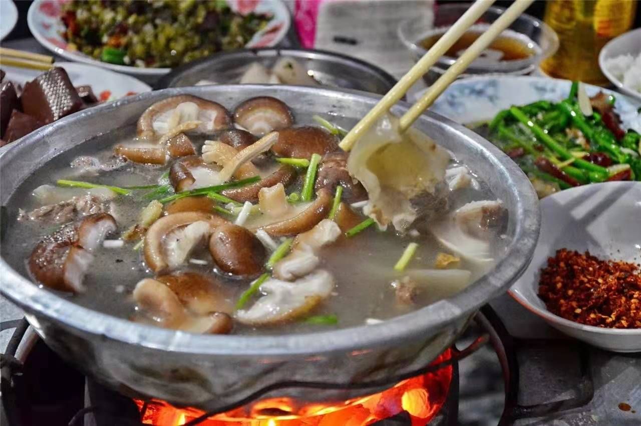 庖汤是宰杀年猪时必吃的第一道主菜,一般是火锅吃法。主料是精选榕江小香猪或本地土猪肉、粉肠、血旺(鲜猪血)等,以清汤口味为主,偶尔也会有酸辣的。