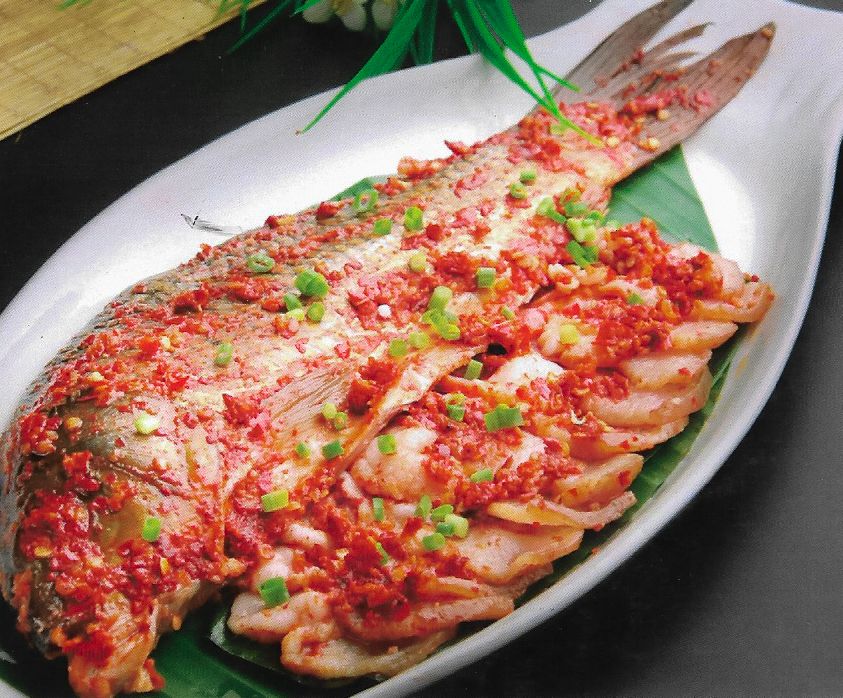 鱼皮卷是全鱼宴上常见的一道菜,鱼皮去鳞后剥下来分切好,卷入打好调味的鱼泥上锅蒸熟出锅淋上酱汁即可,鱼皮锁住了鱼肉的鲜美,口感别具一格。