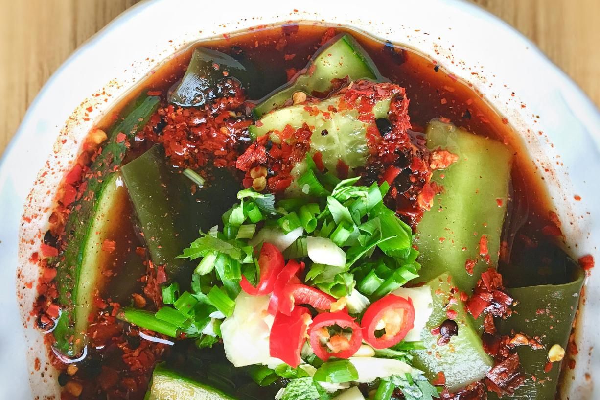 榕江腌生是一道凉拌美食,取时令蔬菜,常见的黄瓜、莴笋、萝卜等洗净切片,再用精酿米醋和清水稀释浸泡片刻,佐以本地烧辣椒配料而成。清脆爽口,夏季解暑必备佳肴。