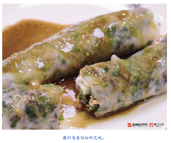 玉林卷馅粉,可以出现在街角、楼下小店或路边夜市,也可以出现在茶楼或酒楼间;可以在闲聊间简单“粗暴”现卷现剪,也可以慢工出细活,精心细致地卷成一份份精美的早点。总之,看似朴素的卷馅粉,吃进嘴里却是闹哄哄的生活。