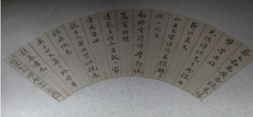 上面一幅扇面,这是吉亮工用行楷抄写的文集,和刚才的草书相比,另有一番风味。吉亮工从唐楷和碑中进行了学习。