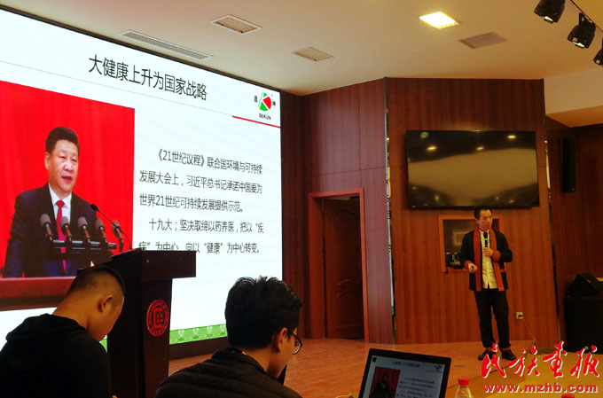 覃迅云教授作题为“神奇的瑶族传统医药文化”的专题学术报告(关雎 摄影)